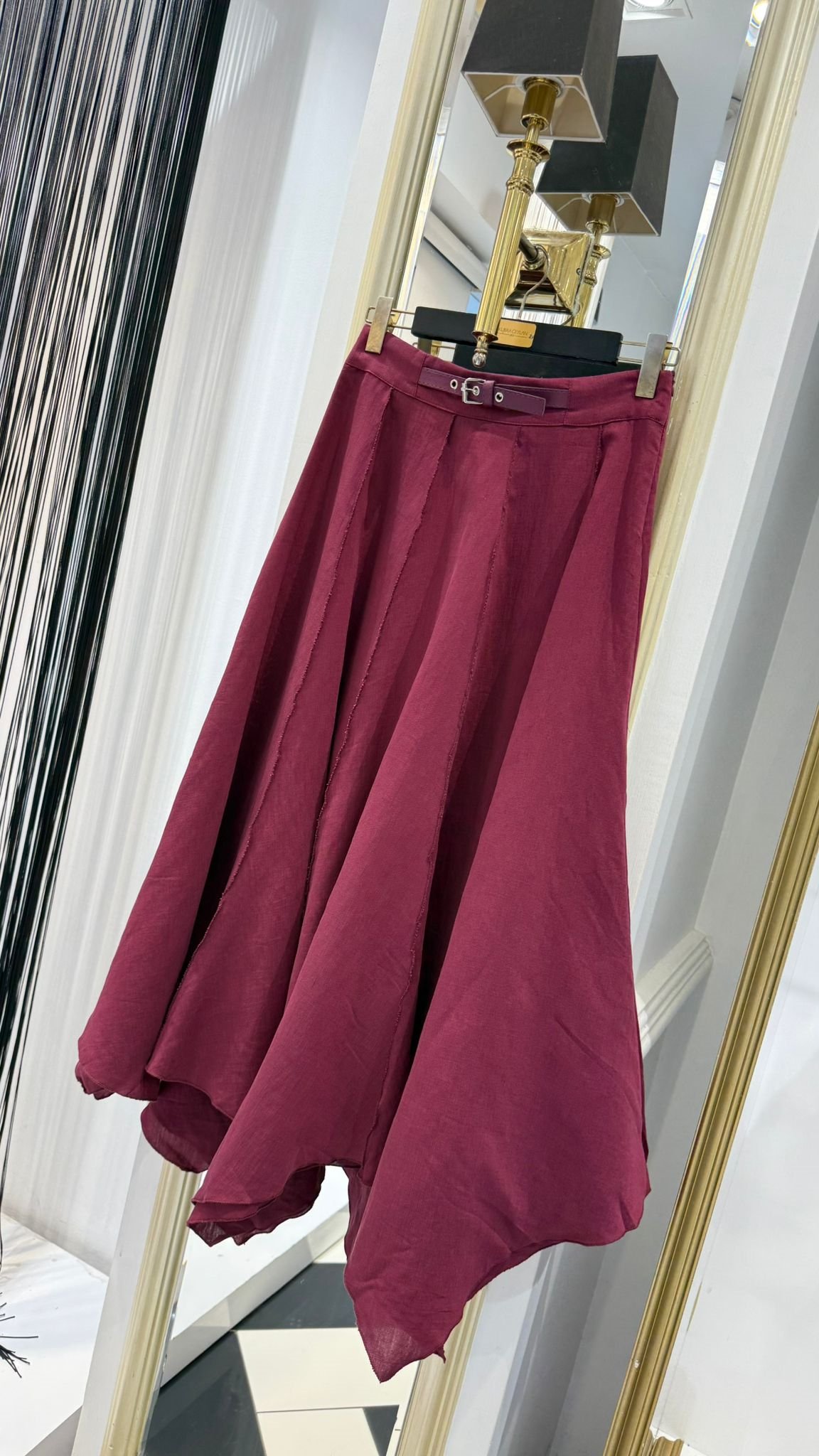 Kemer Detay Asimetrik Etek (Y.3695-Bordo)