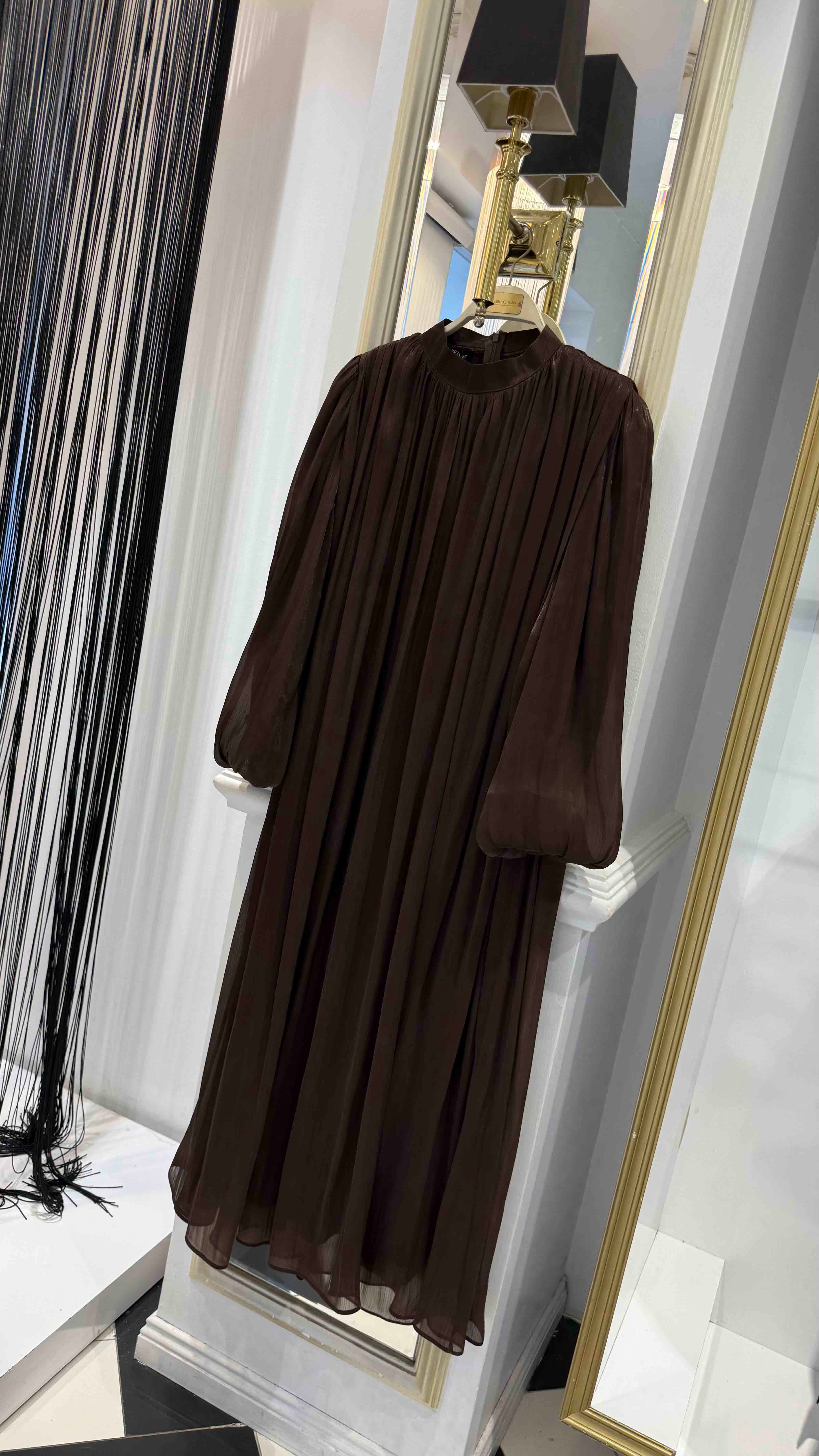 Balon Kol Pilise Elbise (Y.3678-Kahverengi)