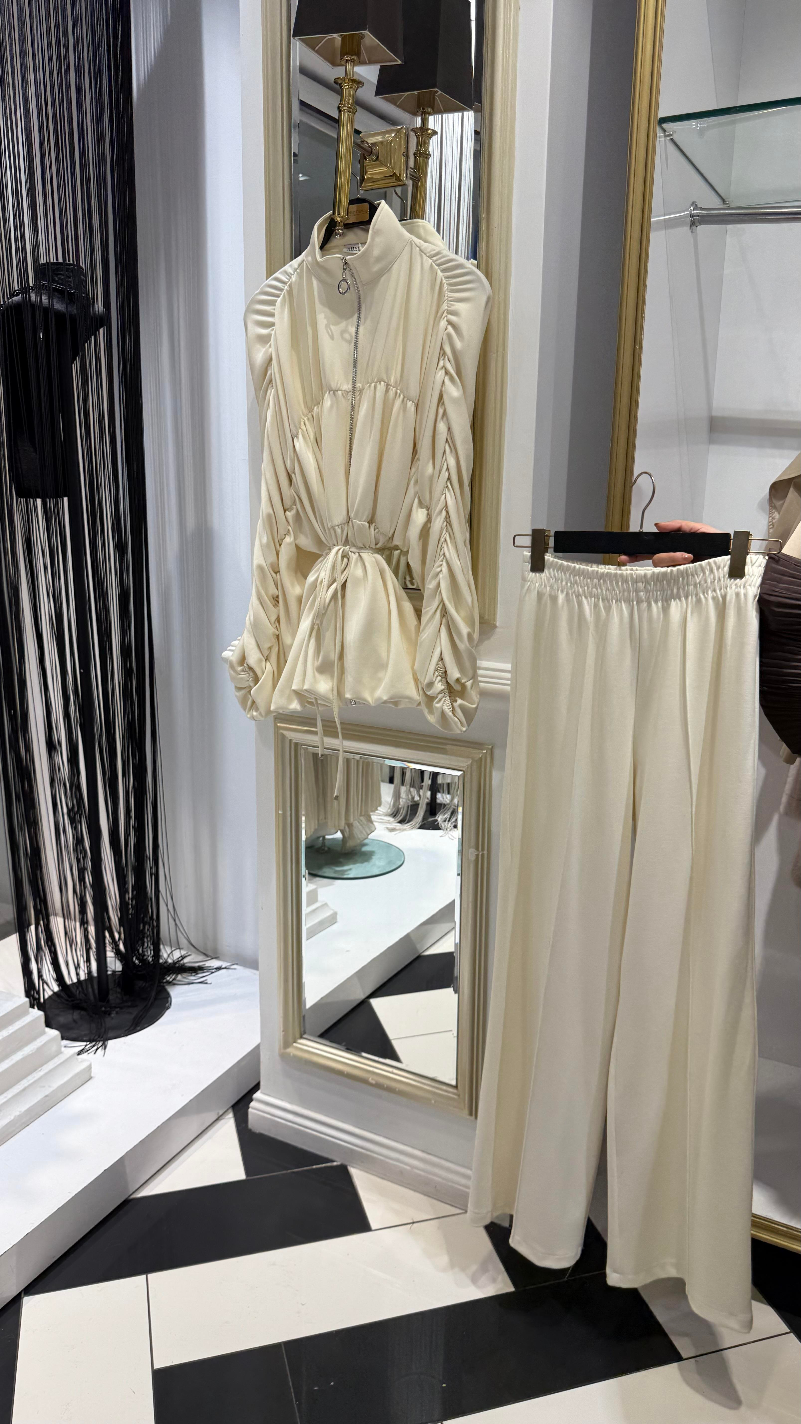 Büzgü Detay Pant Takım (Y.3283-Ekru)