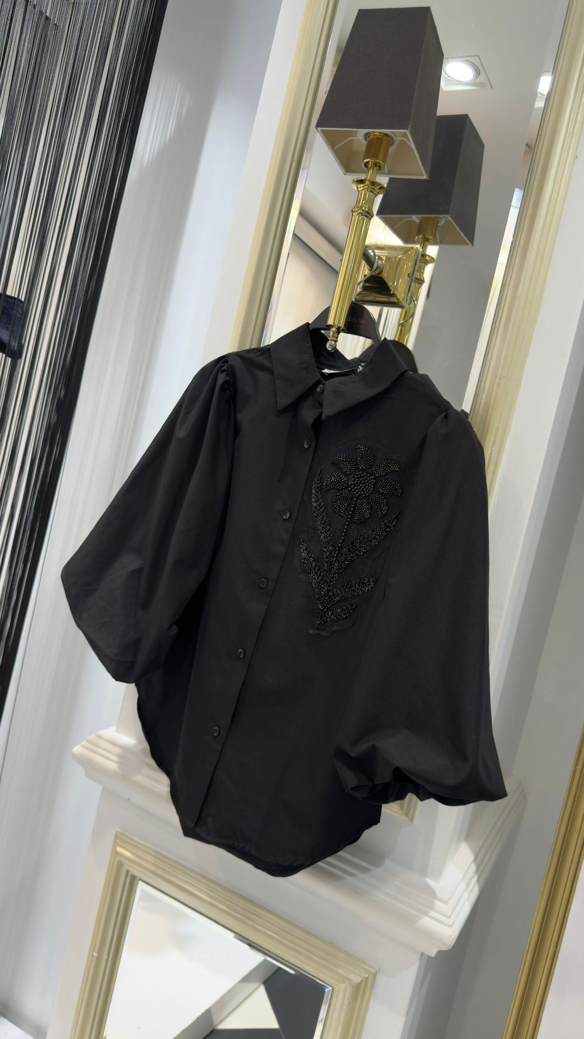 Çiçek Detay Boncuklu Gömlek (Y.3793-Siyah)