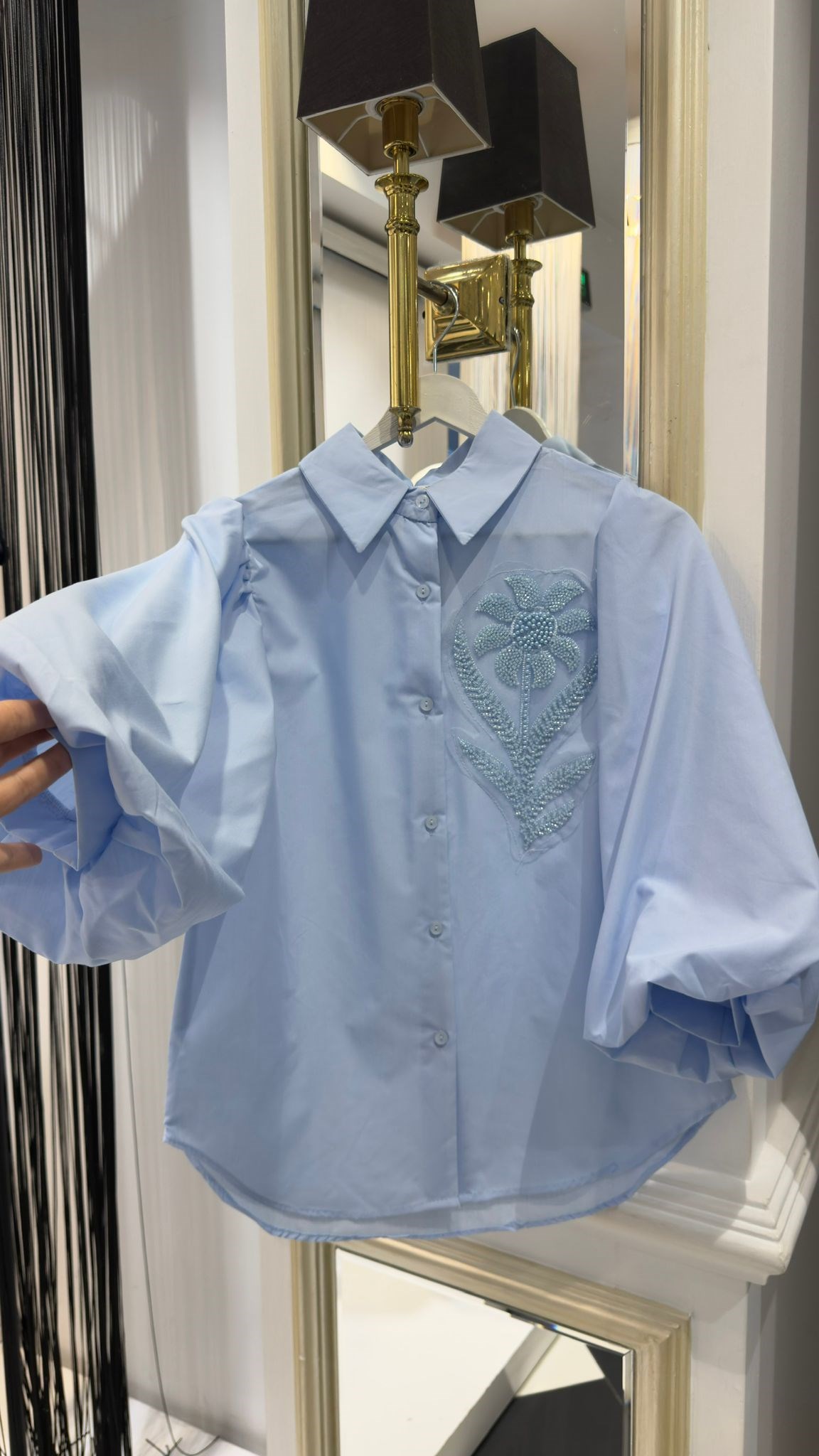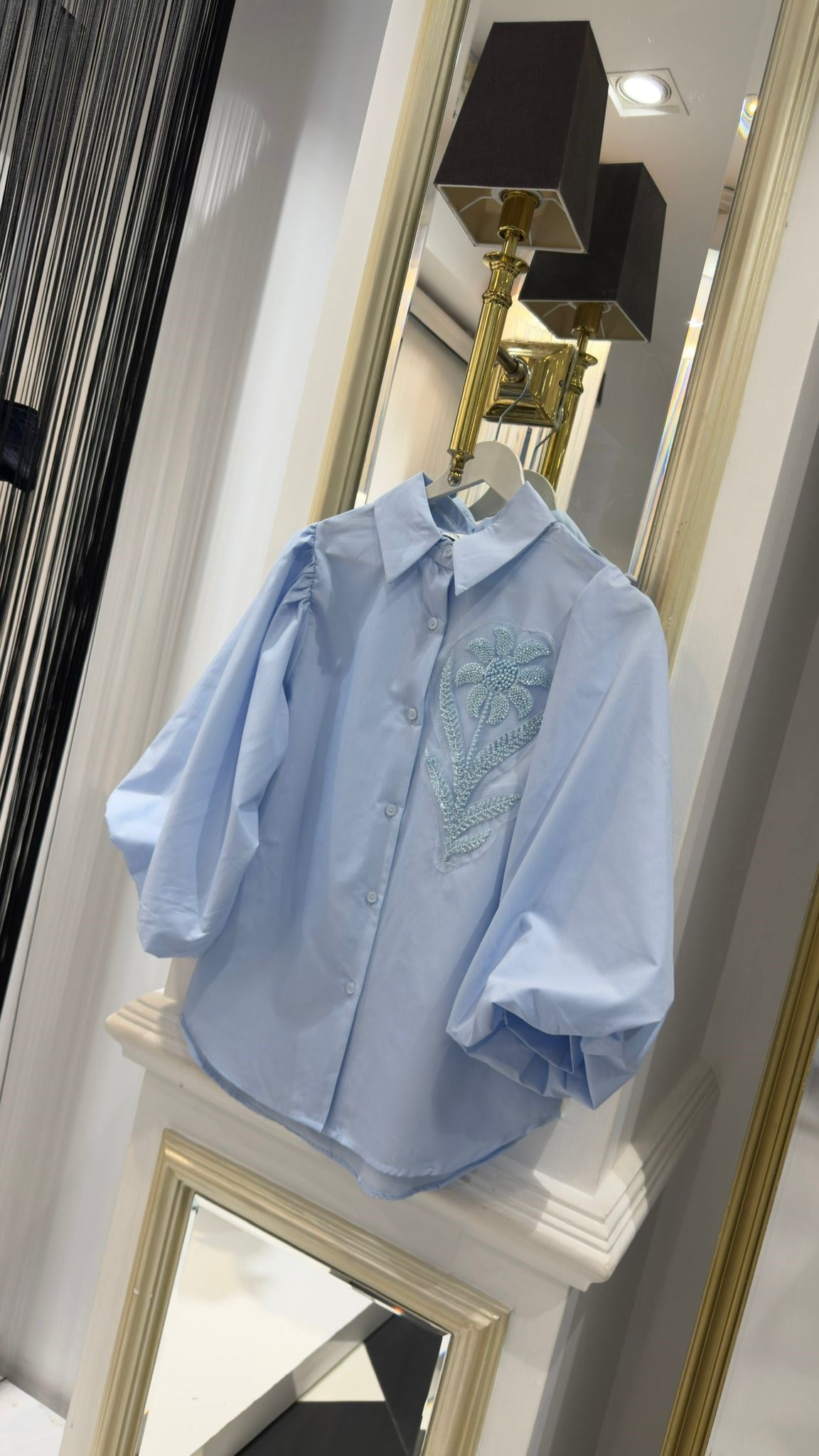 Çiçek Detay Boncuklu Gömlek
