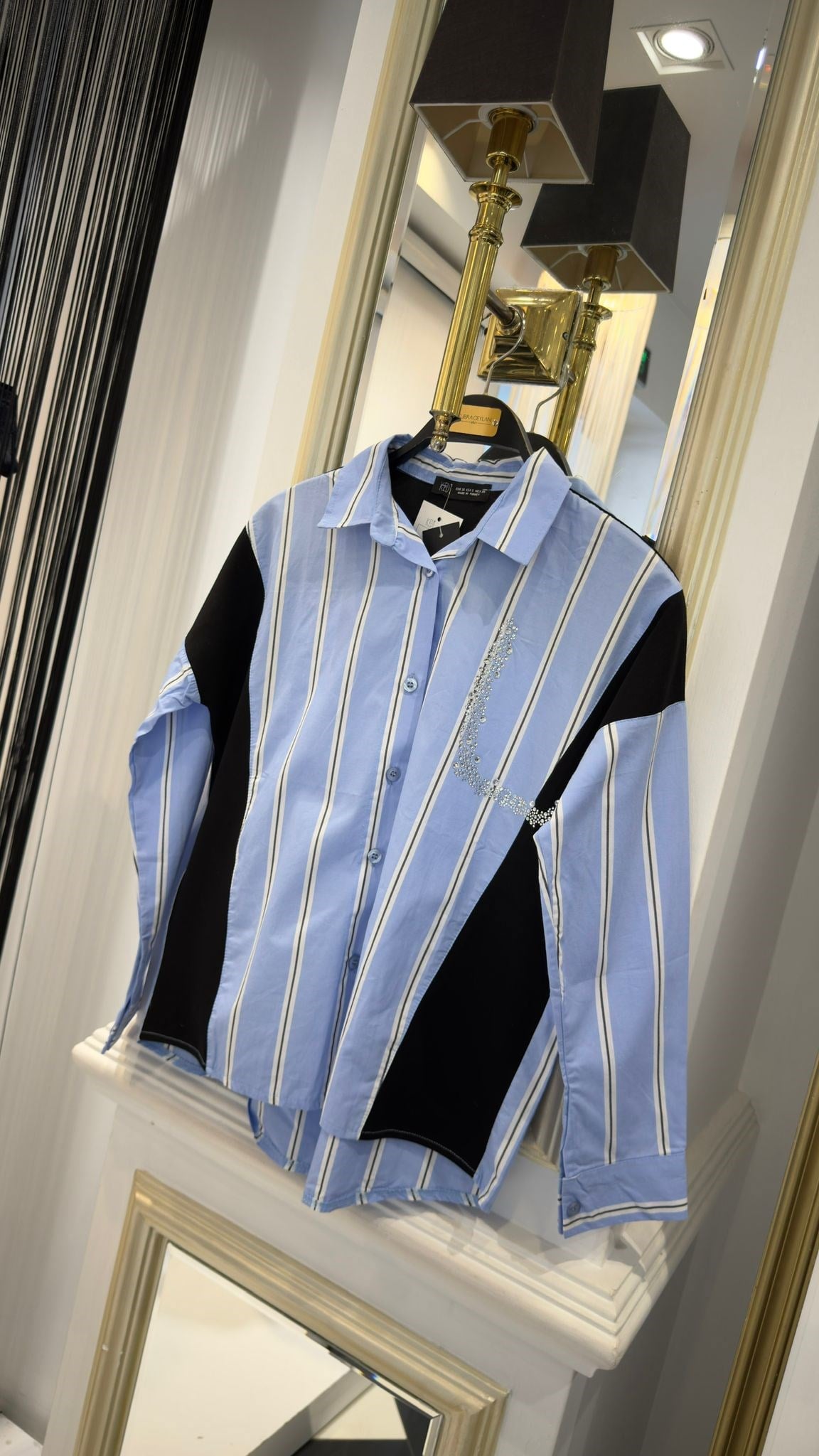 Çizgi Detay Yaka Taş Gömlek