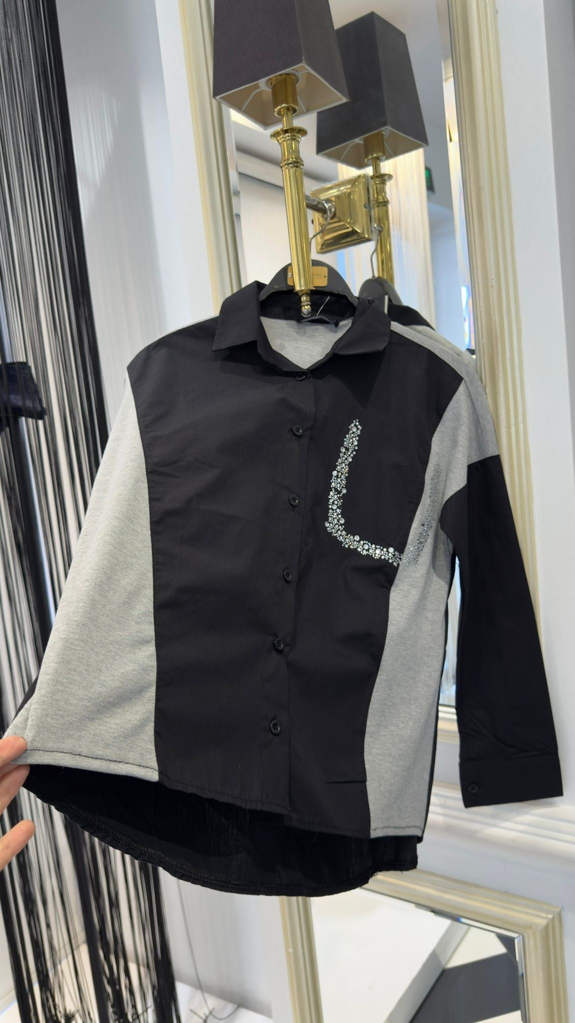 Yaka Taş Detay Gömlek (Y.3799-Siyah)