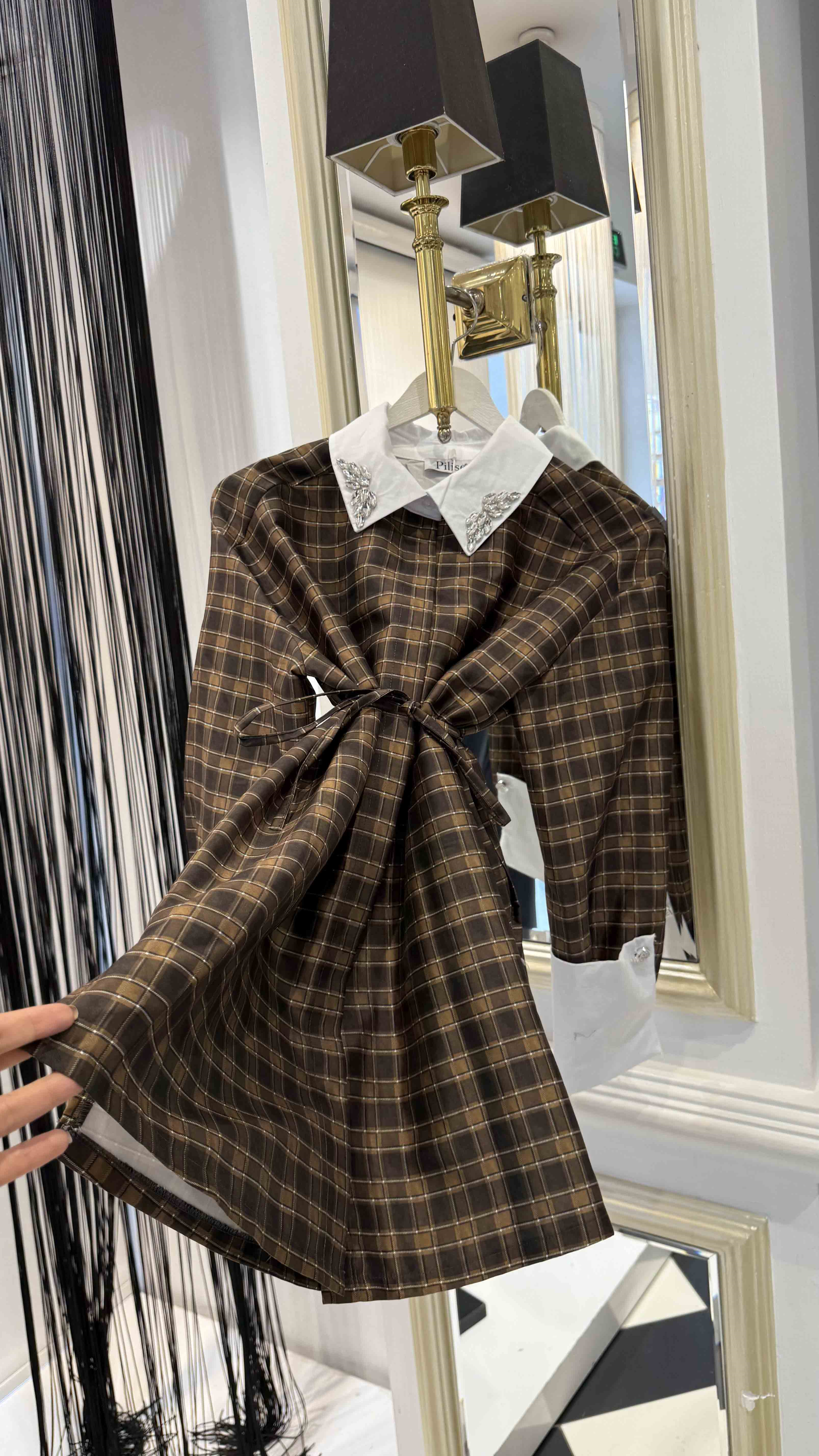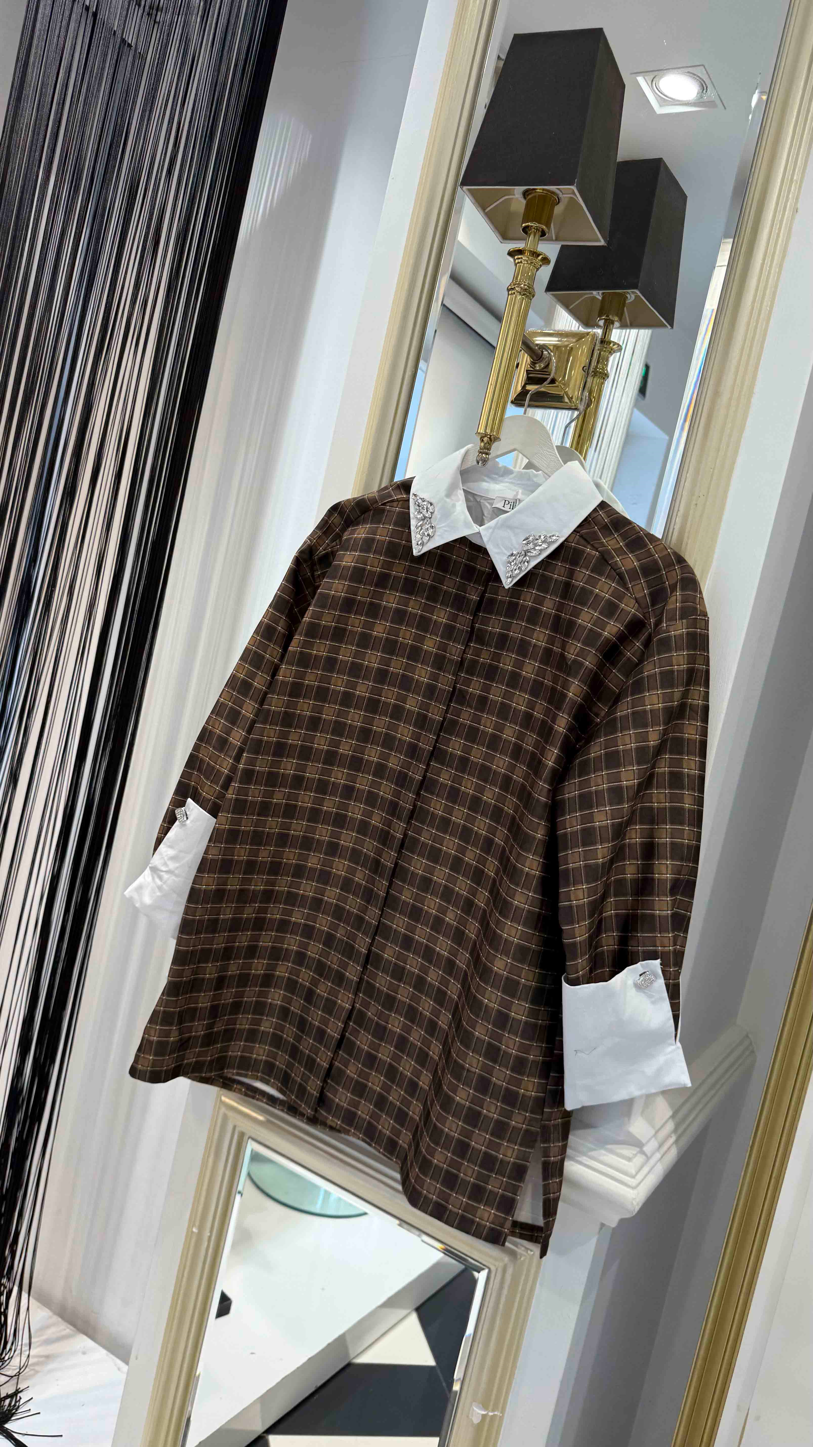 Ekose Taş Detay Gömlek (Y.3687-Kahverengi)
