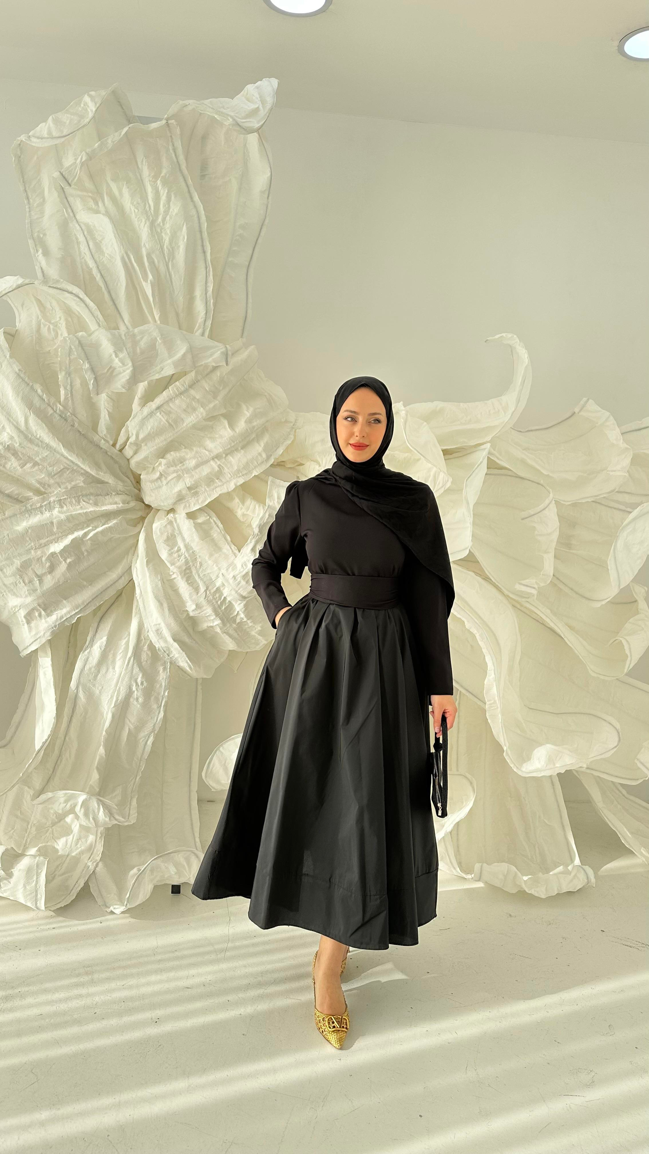 Eteği Tafta Elbise (Y.3286-Siyah)
