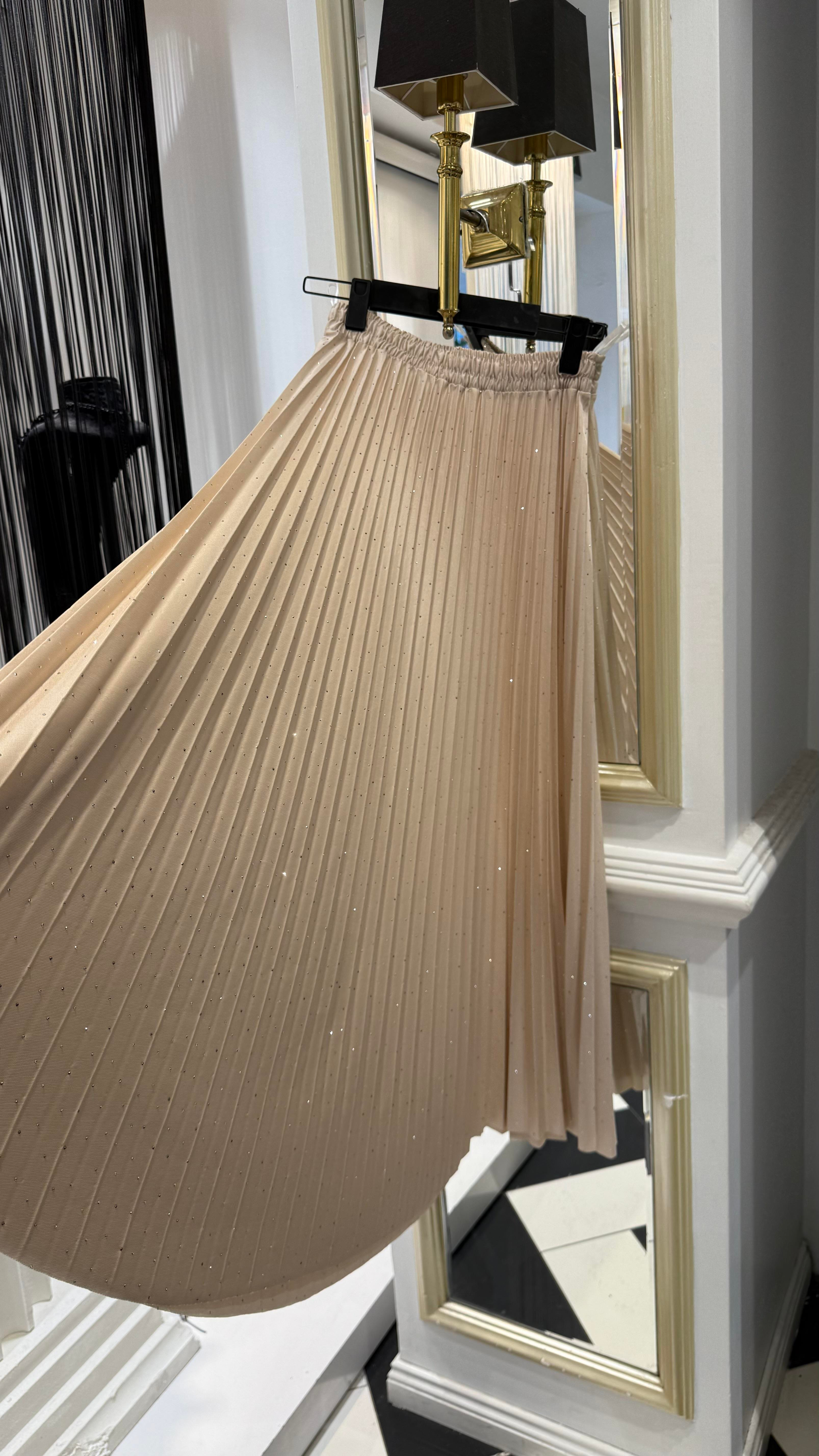 Işıltılı Pileli Etek (Y.3312-Bej)