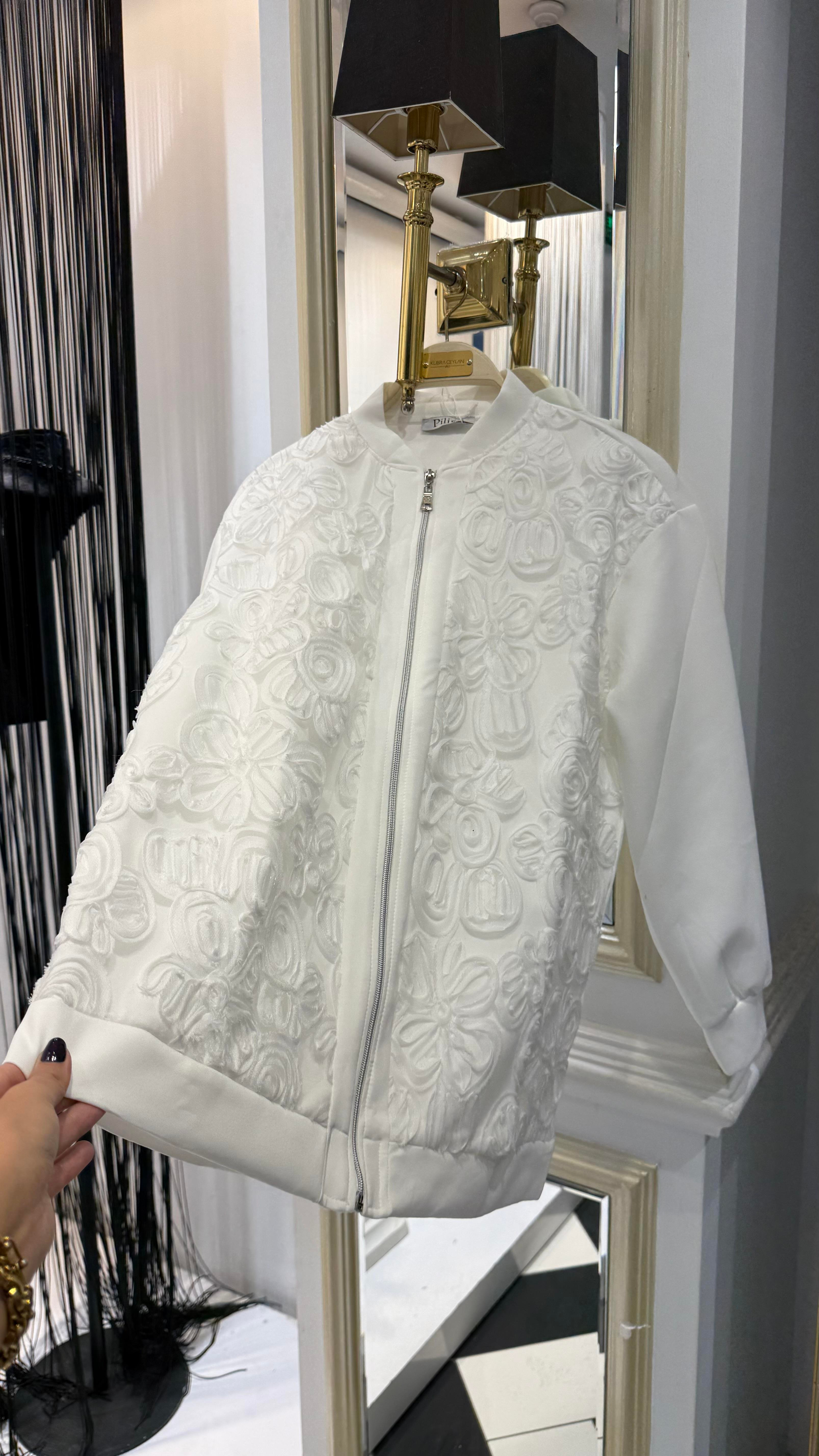 Kabartma Detay Fermuarlı Kap (Y.3335-Beyaz)