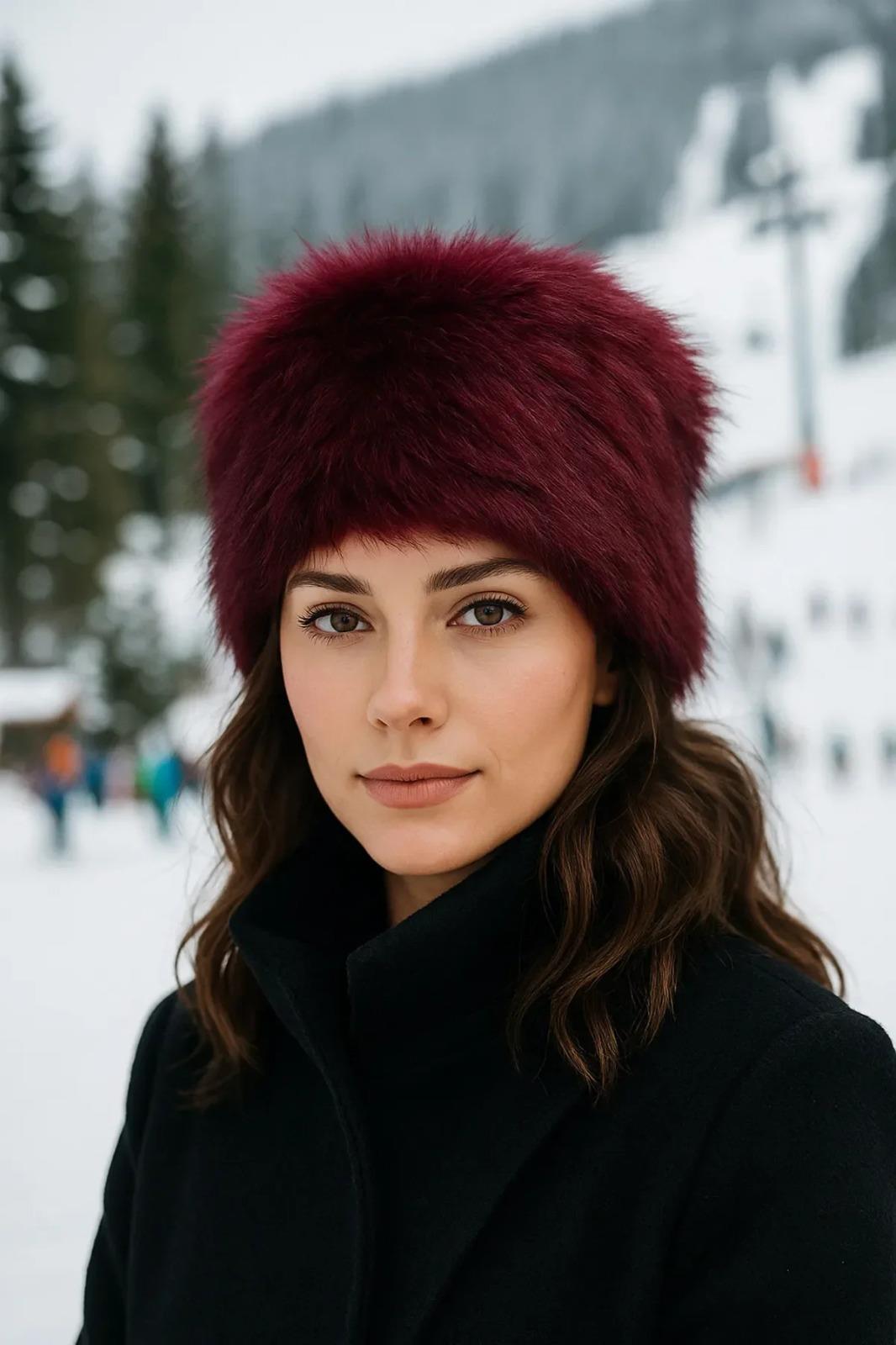Kalın Peluş Kalpak Şapka (Y.3321-Bordo)