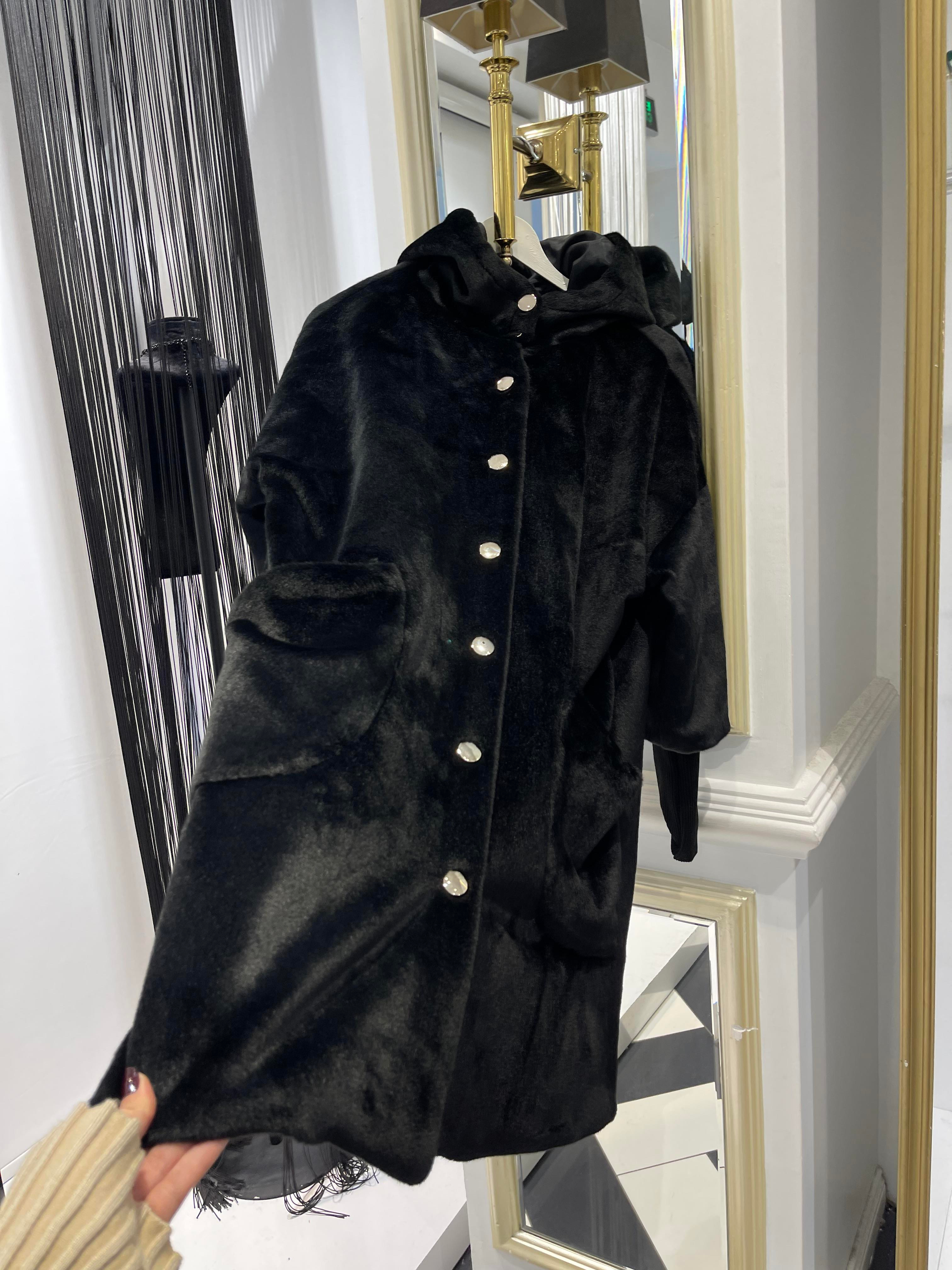 Kapişonlu Triko Kol Kaban (Y.2471--Siyah)
