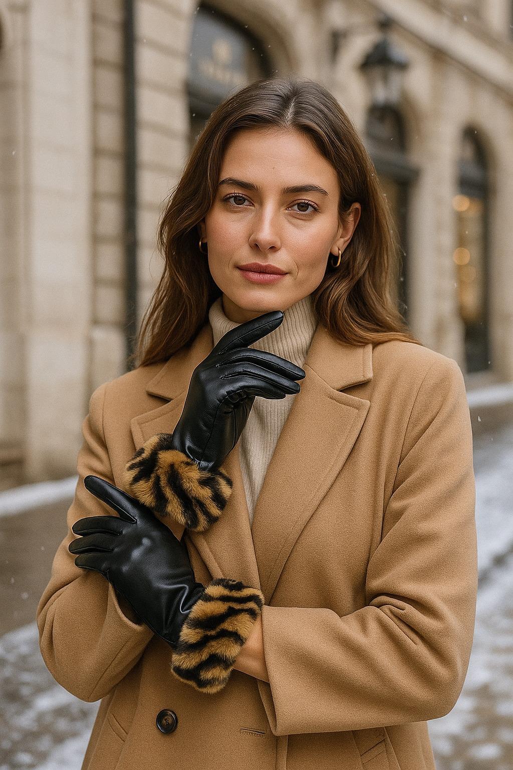 Kaplan Peluşlu Deri Eldiven (Y.3268-Siyah)