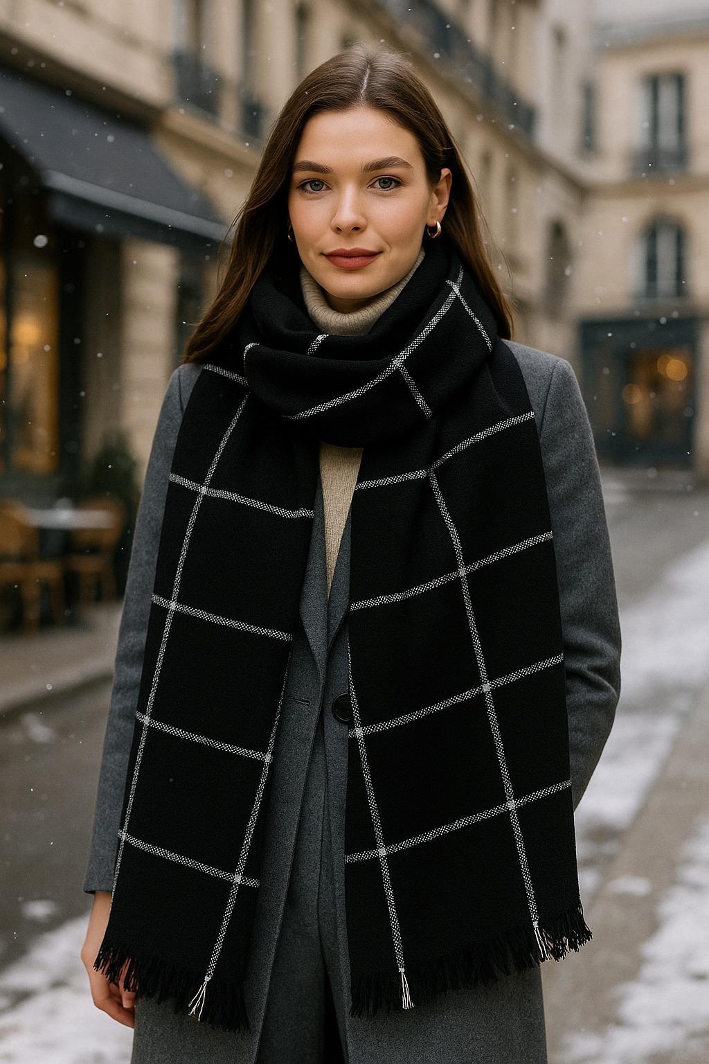 Kare Desen Şal (Y.3257-Siyah)