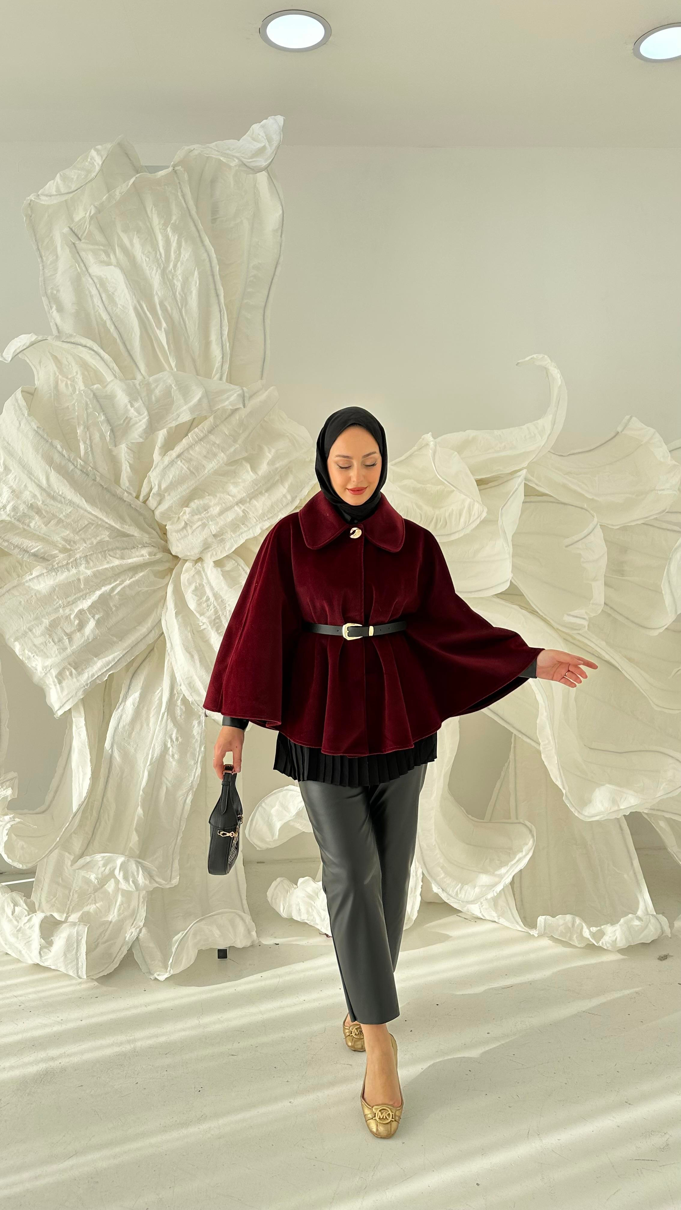 Kemerli Düğmeli Panço (Y.3334-Bordo)