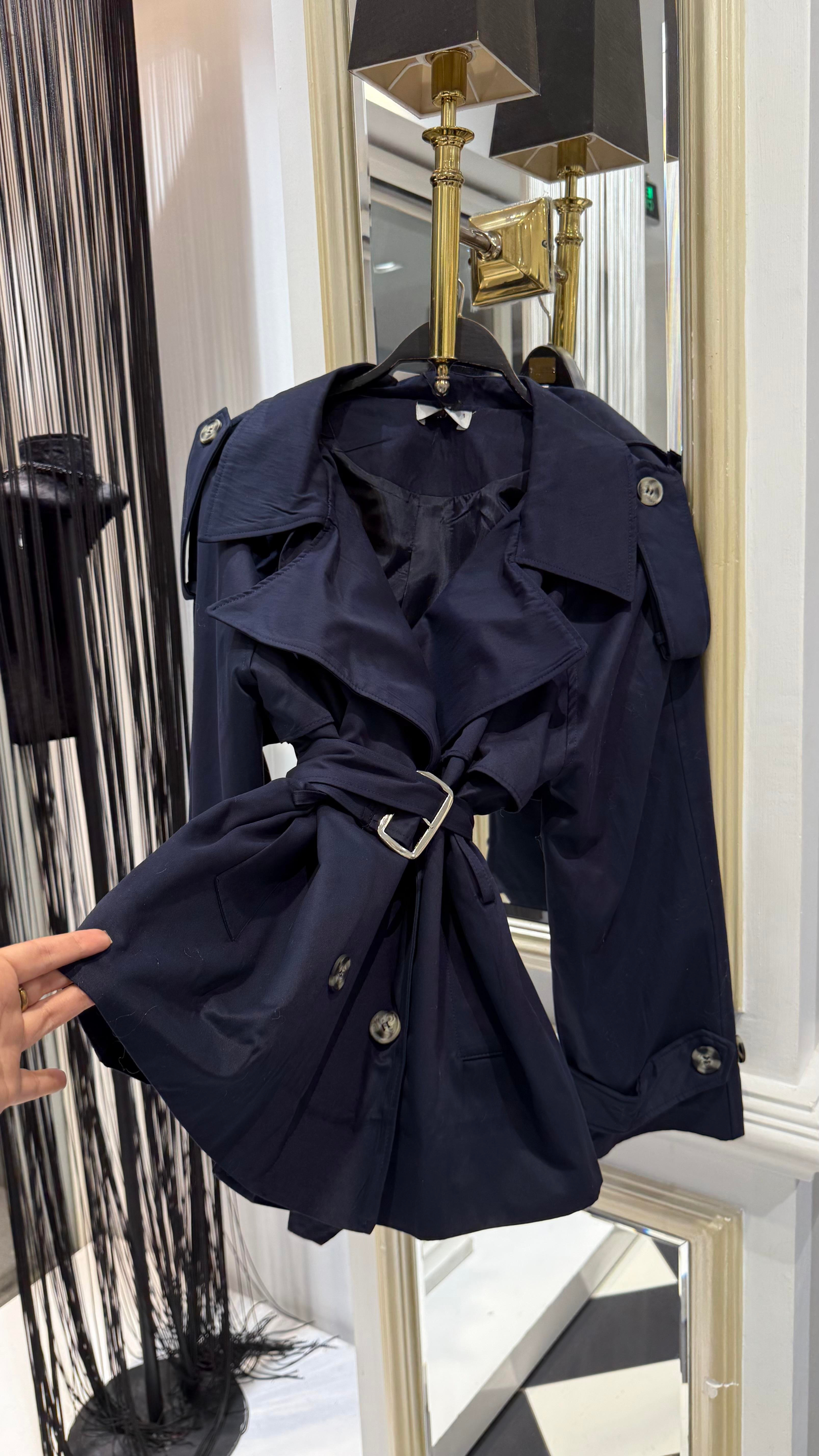 Kemerli Kısa Trenç (Y.3278-Lacivert)