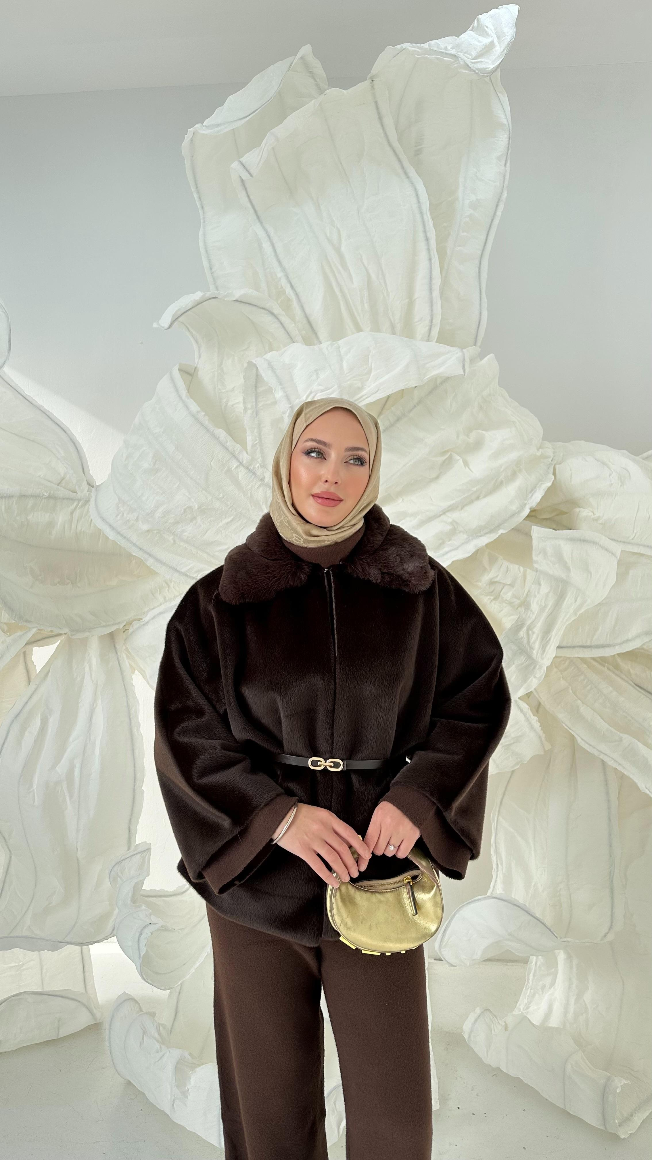 Kemerli Kürklü Ceket (Y.3298-Kahverengi)