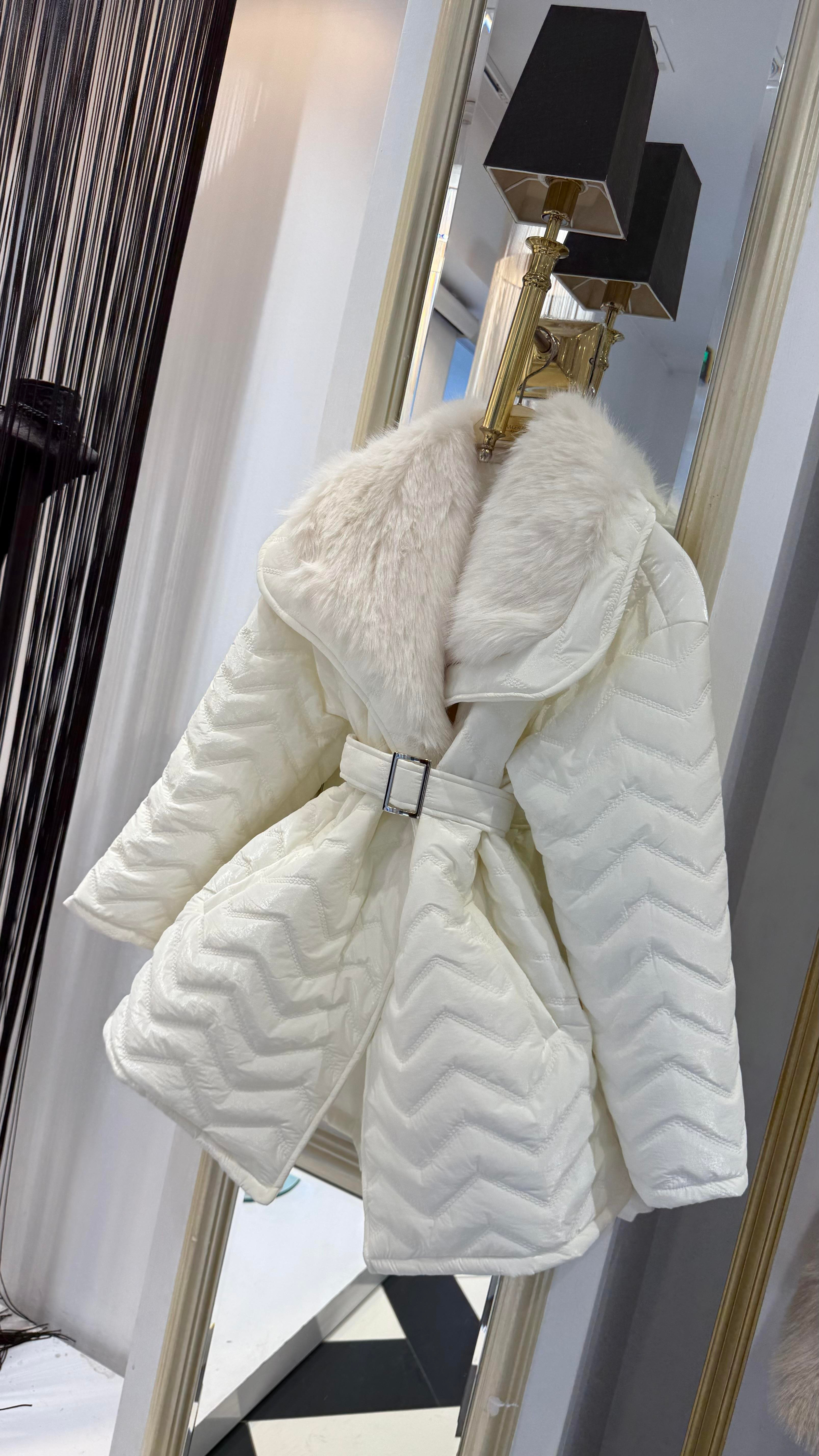 Kürk Yaka Kapitone Mont (Y.3340-Ekru)
