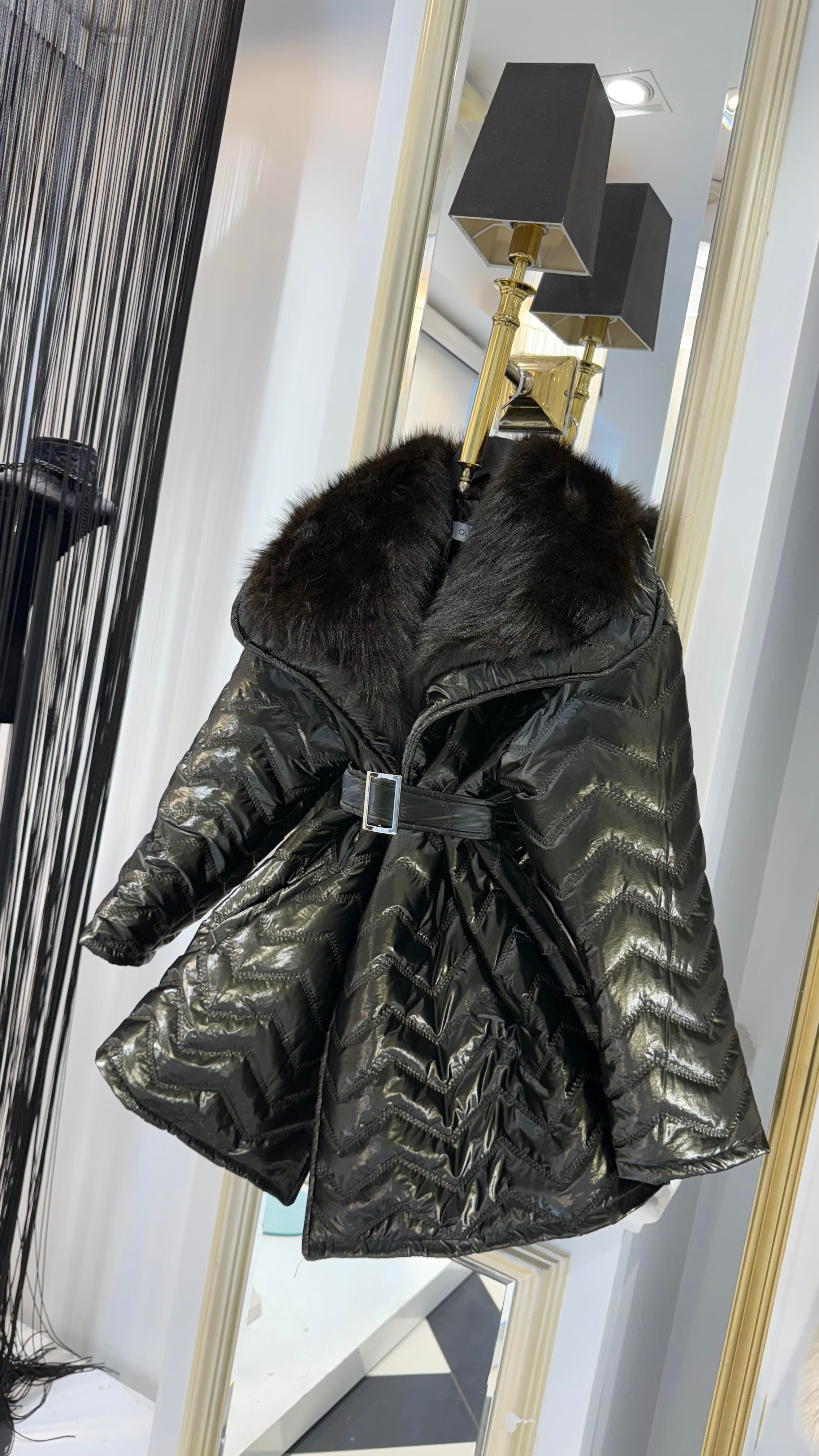 Kürk Yaka Kapitone Mont (Y.3340-Haki)