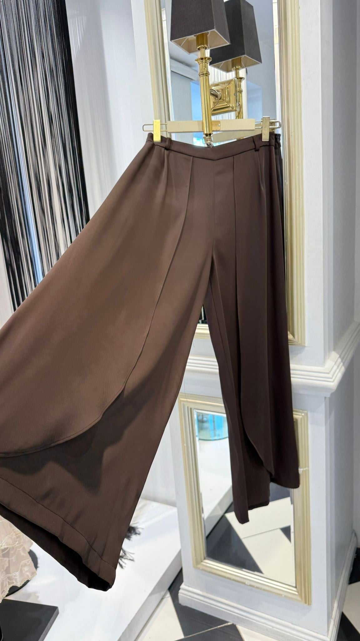 Ön Yırtmaç Detay Palazzo Pantolon (Y.3735-Kahverengi)