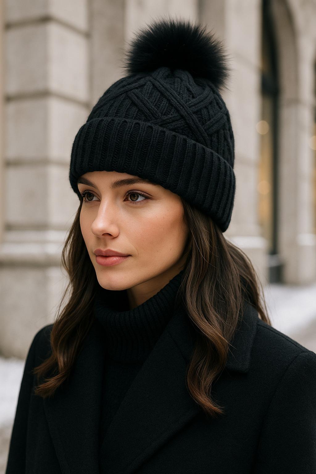 Ponponlu Örgü Desen Bere (Y.3328-Siyah)