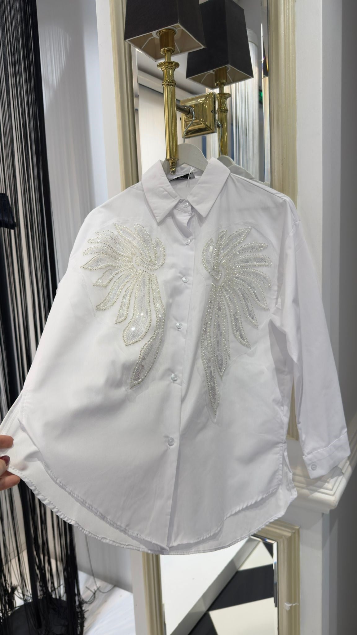 Pul ve İnci Detay Gömlek (Y.3797-Beyaz)
