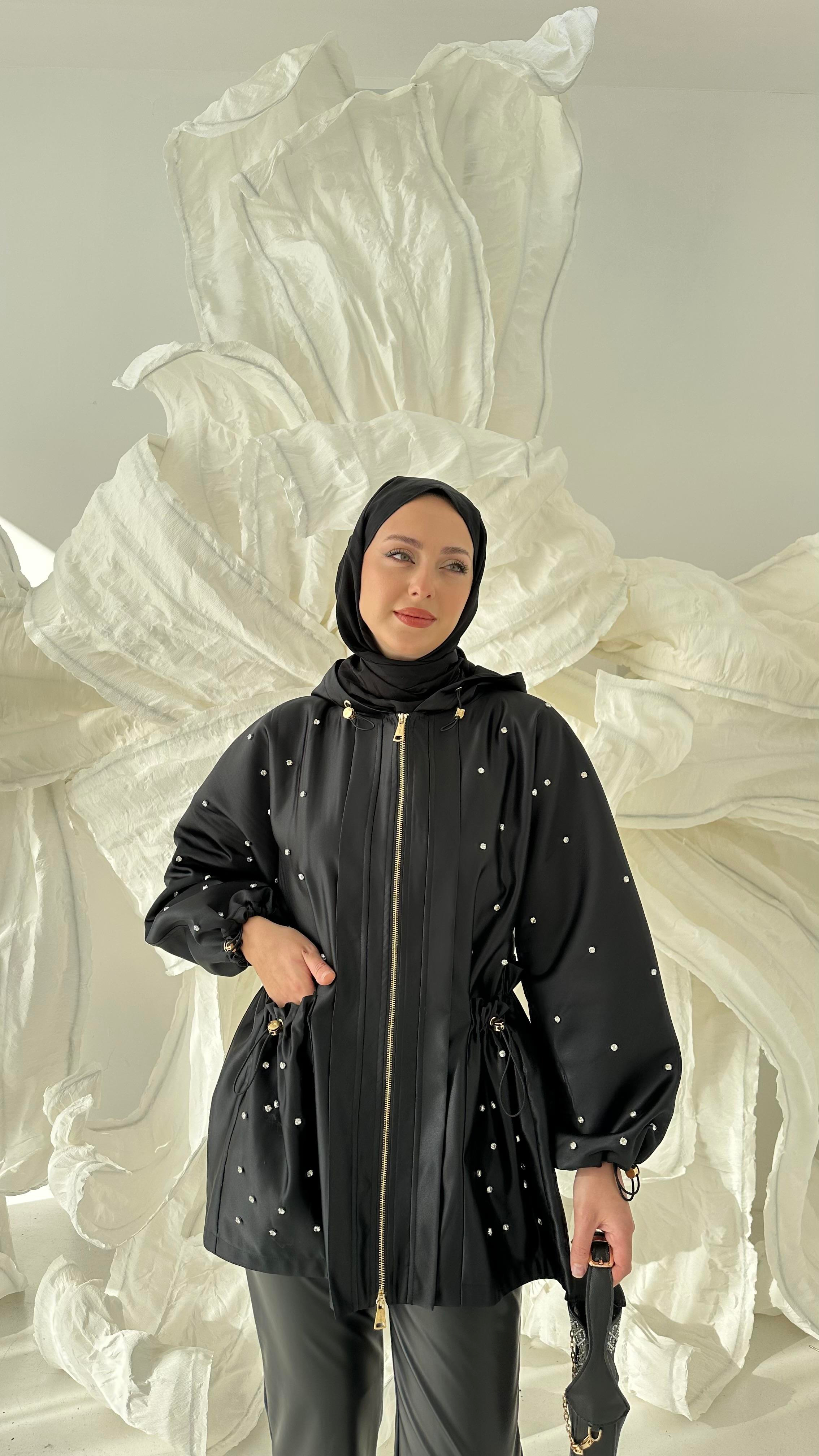 Tasarım Kapüşon Trenç (K.0036-Siyah)