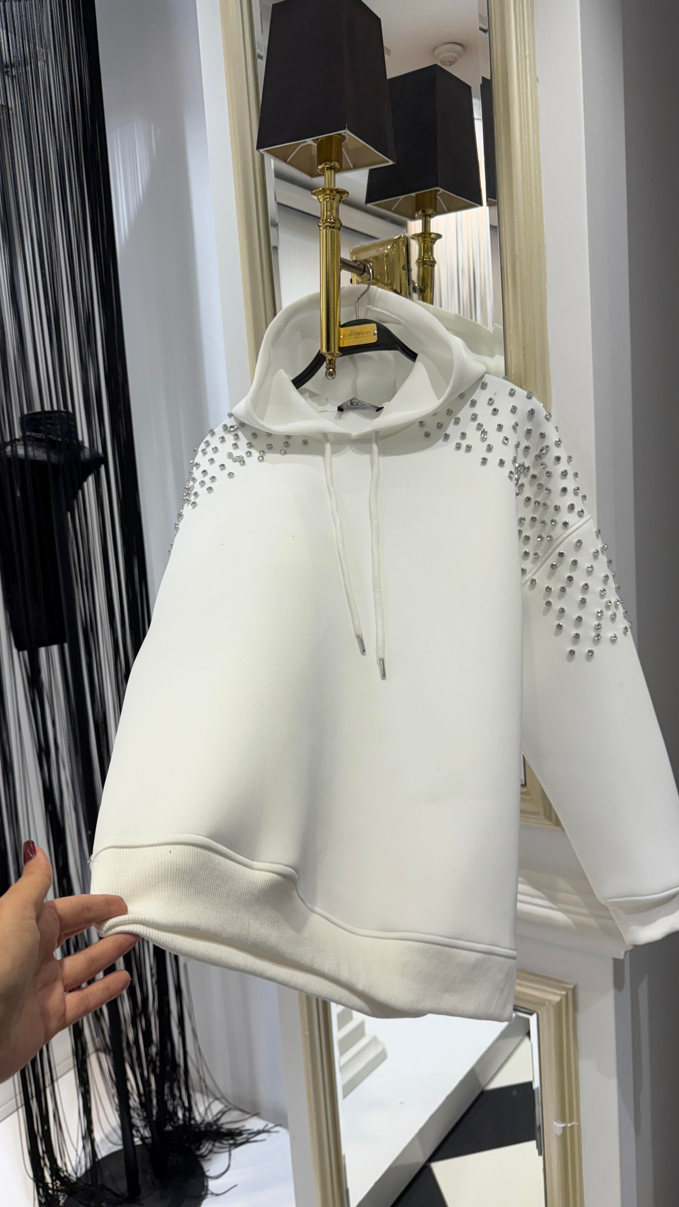 Taşlı Kapüşonlu Sweat (Y.3308-Beyaz)
