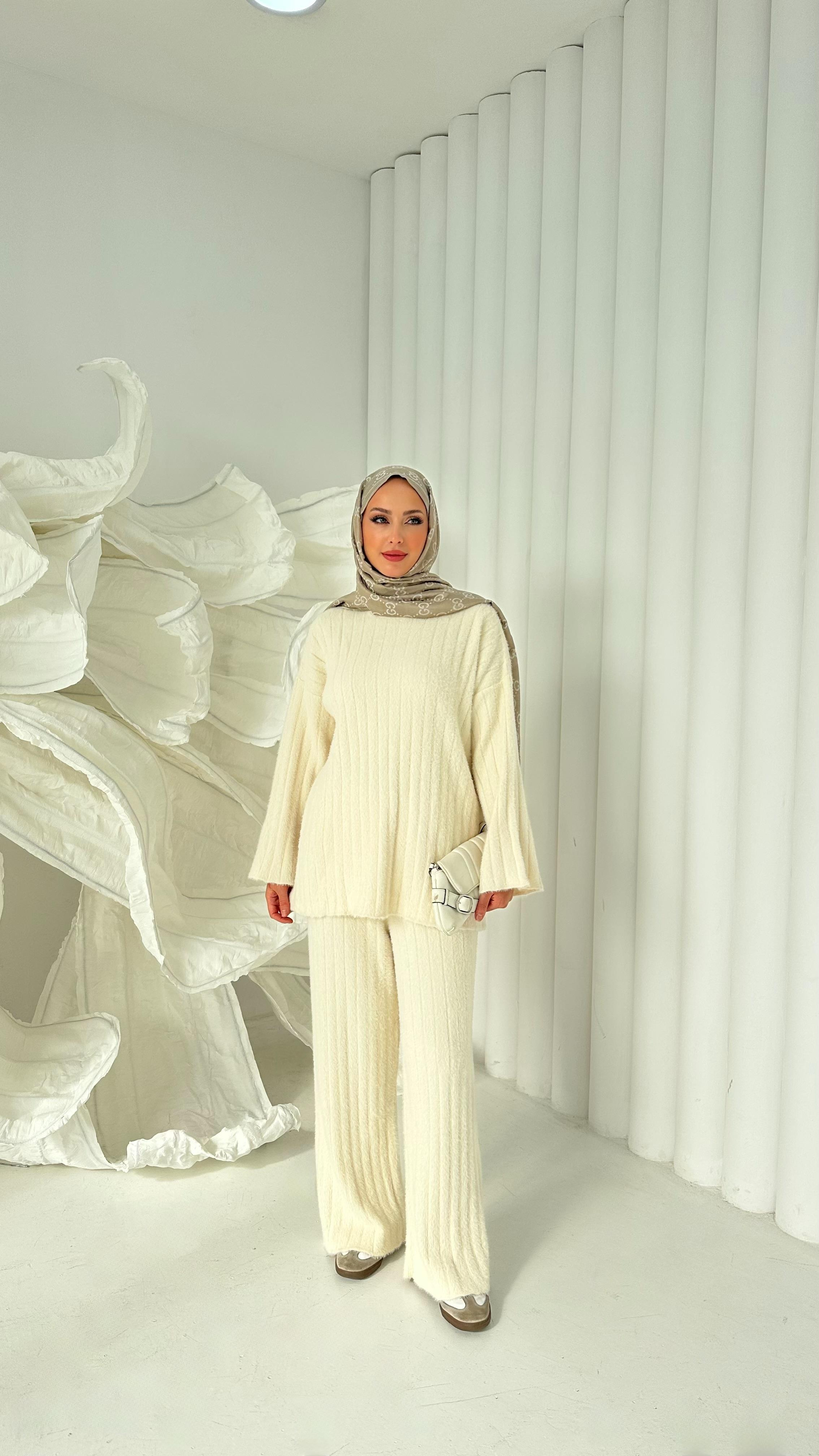 Triko Şeritli Takım (Y.3300-Ekru)