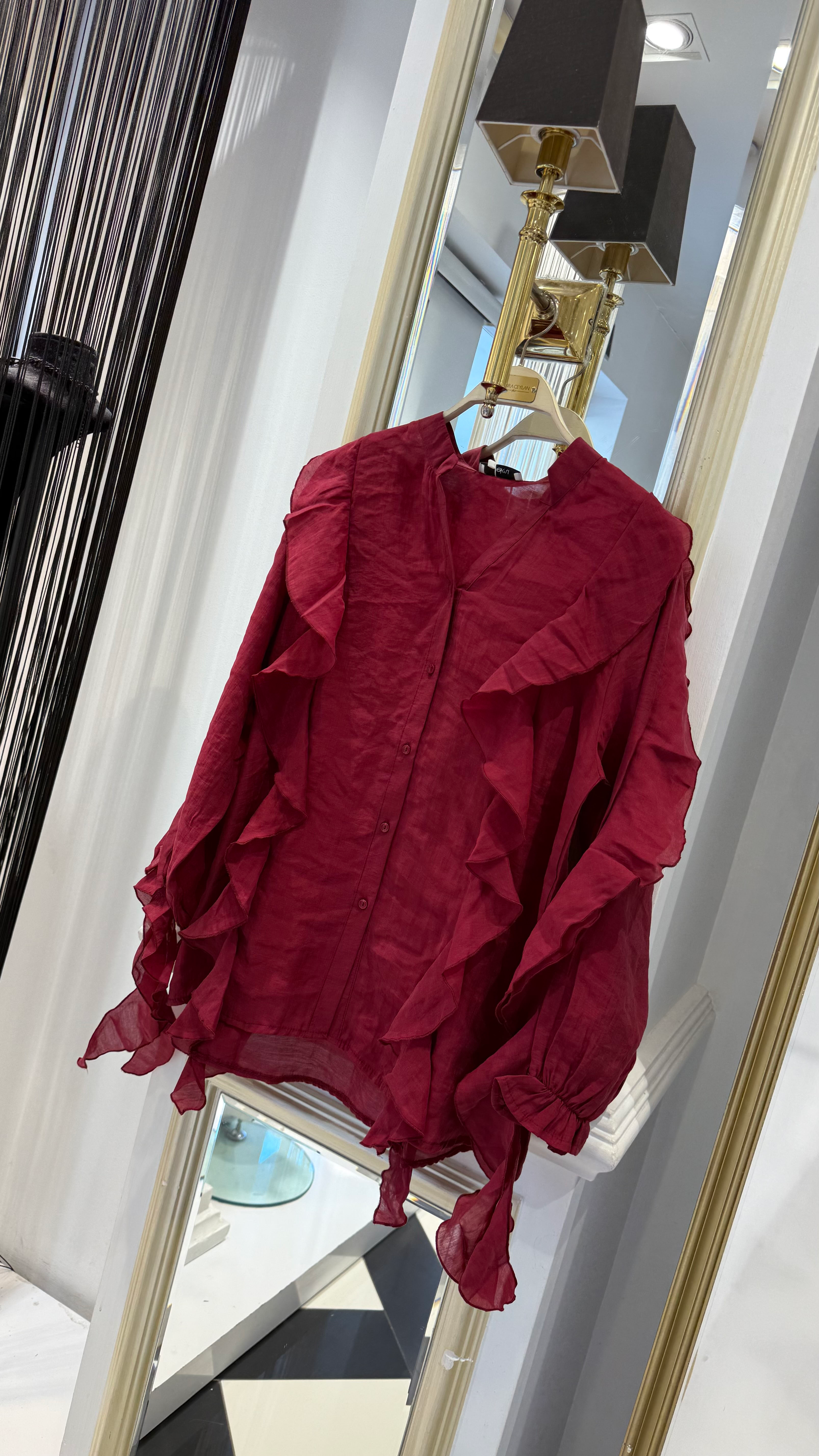 Volan Detay Gömlek (Y.3666-Bordo)
