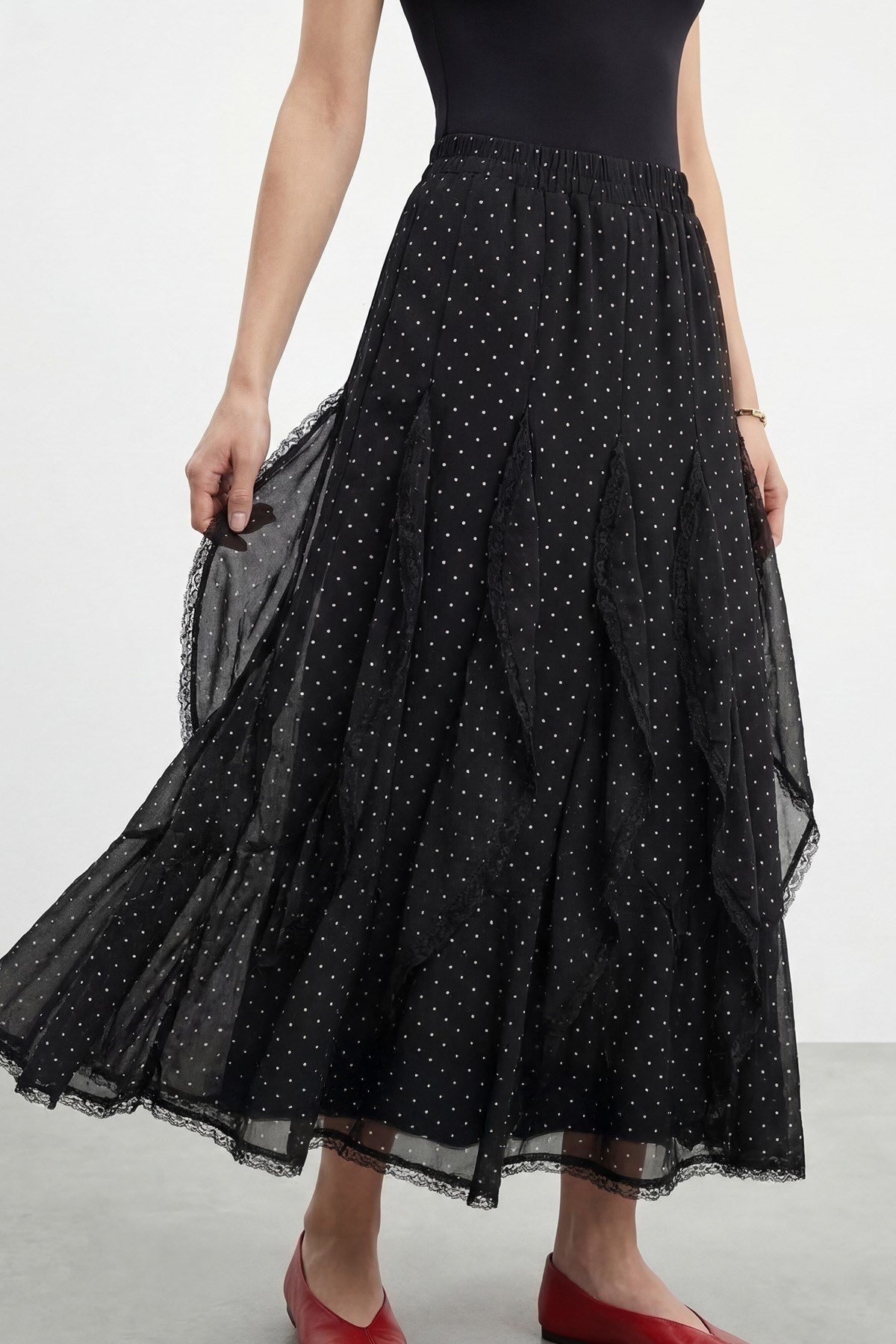 Volan Detay Şifon Etek (Y.3772-Siyah)