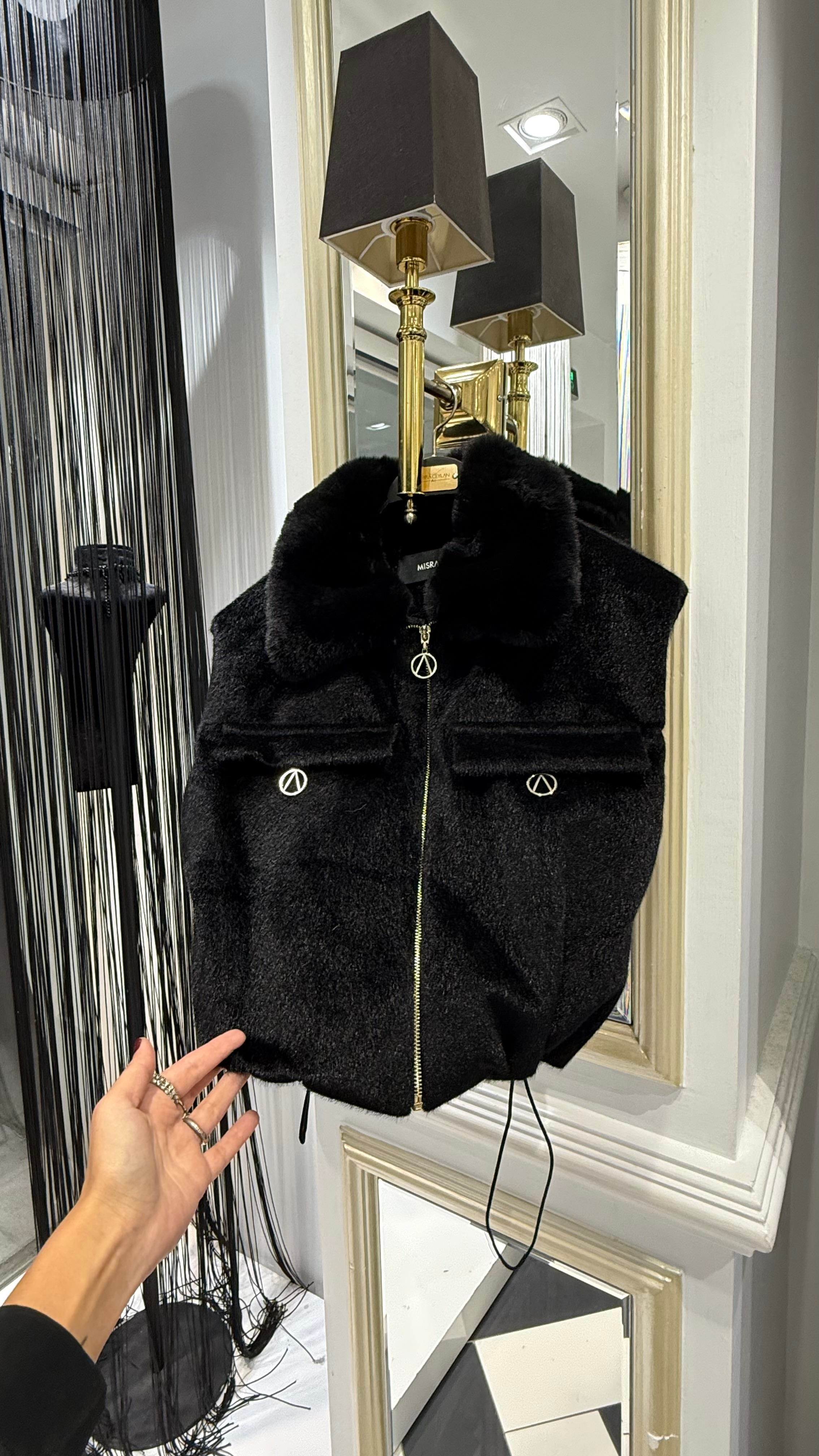 Yakası Kürklü Yelek (Y.2522-Siyah )