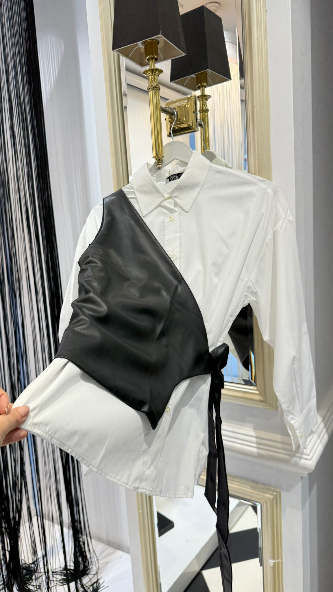 Yandan Bağlamalı Deri Detay Gömlek