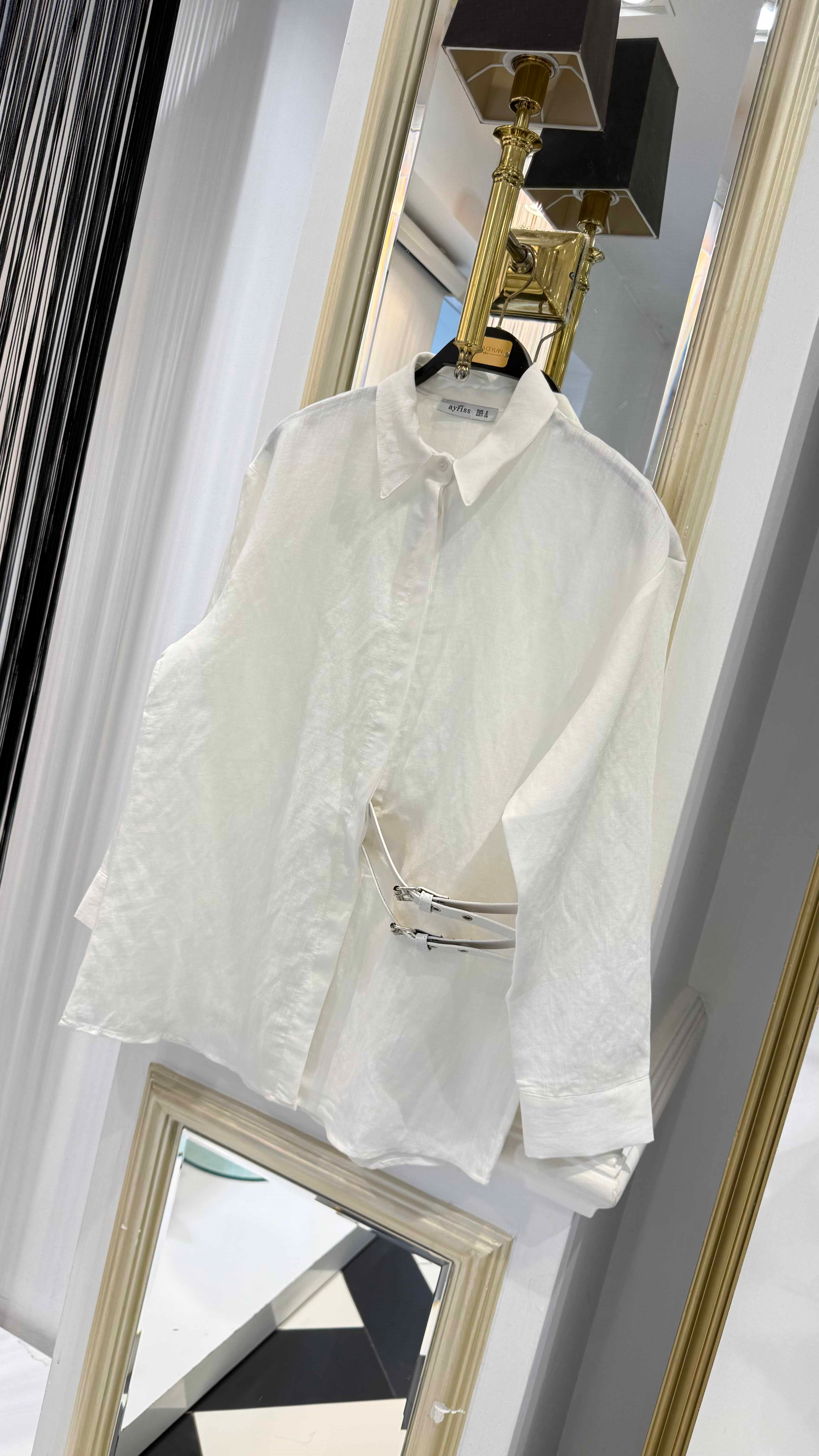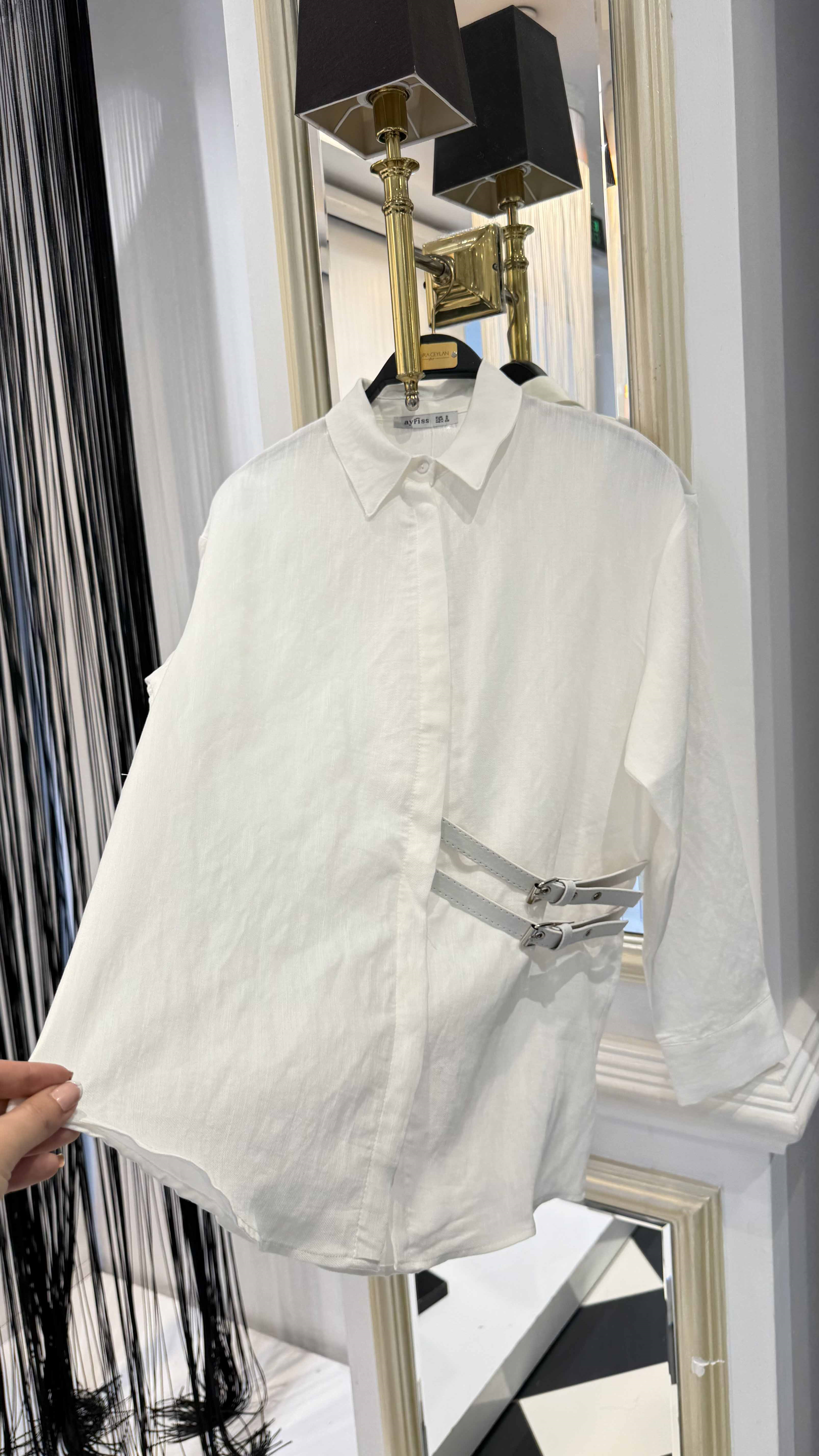 Yanı Çift Kemerli Gömlek (Y.3696-Beyaz)