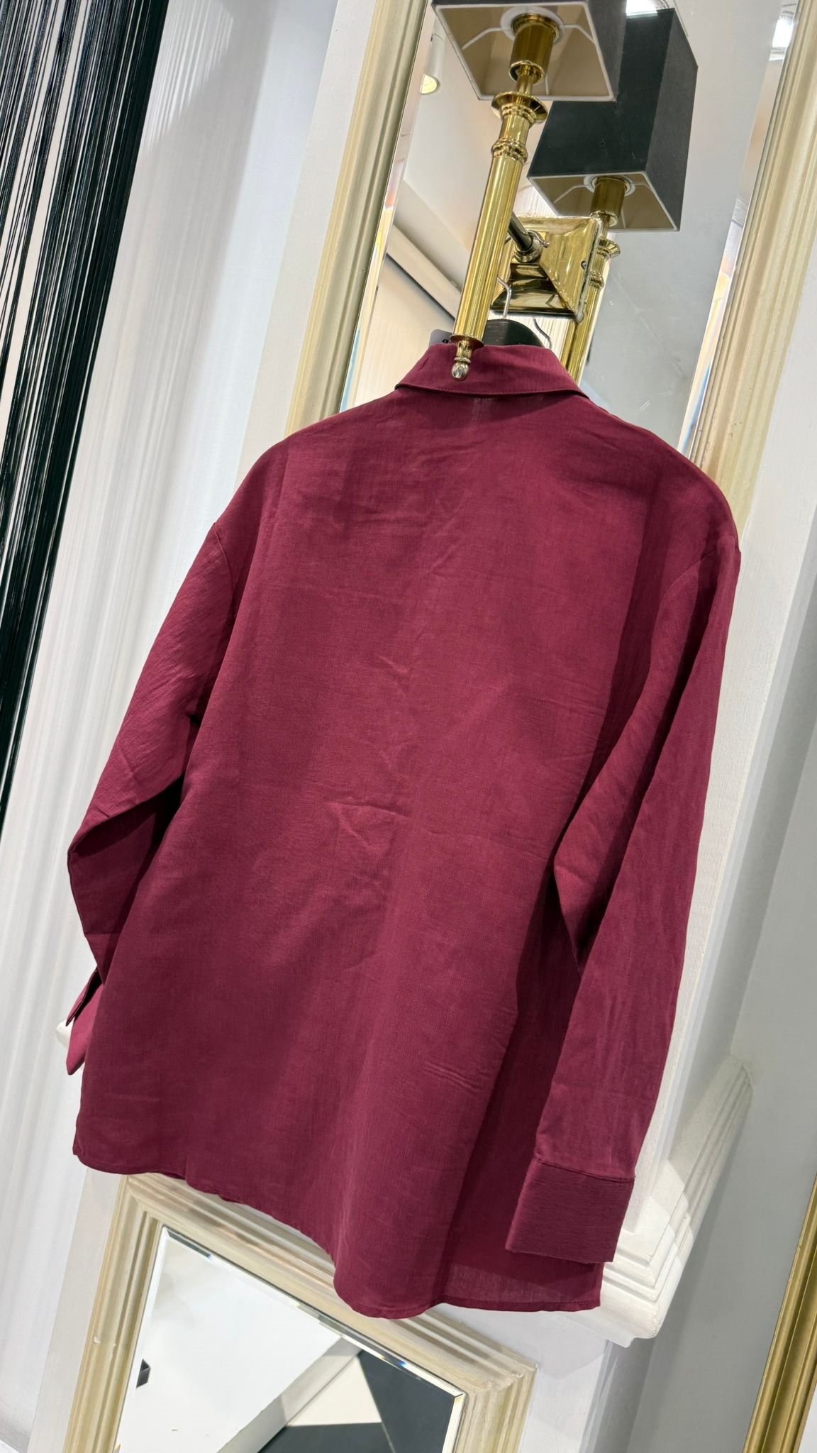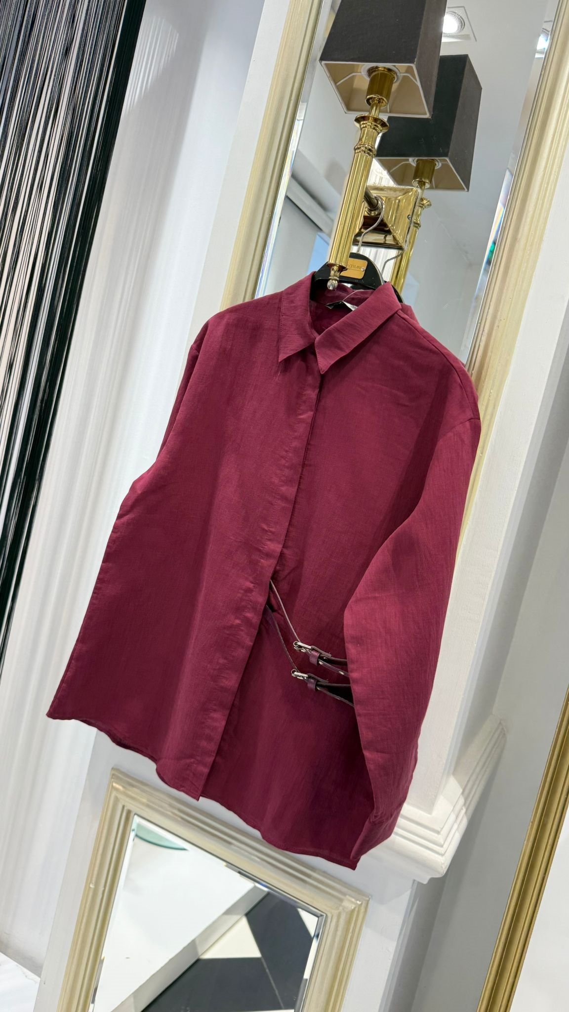Yanı Çift Kemerli Gömlek (Y.3696-Bordo)